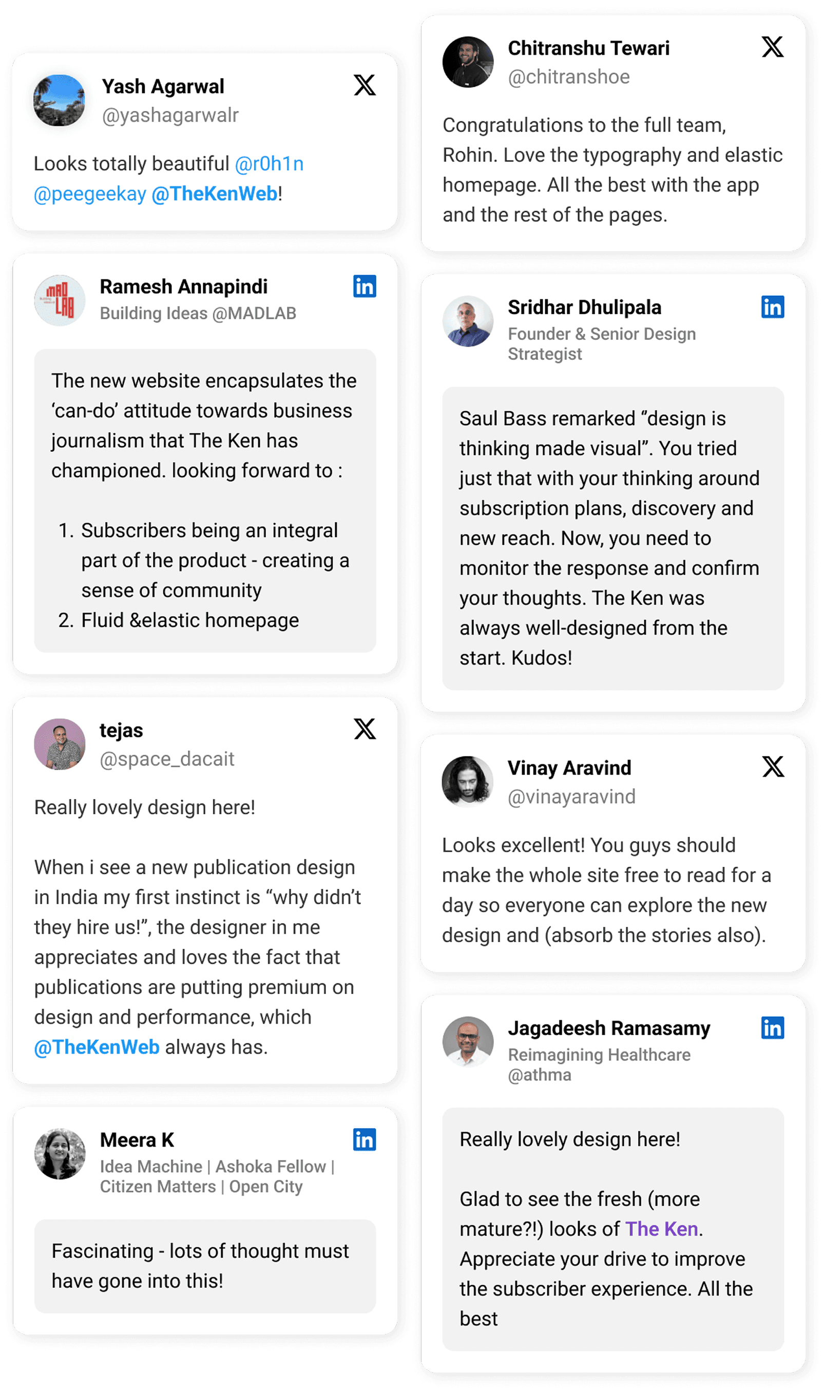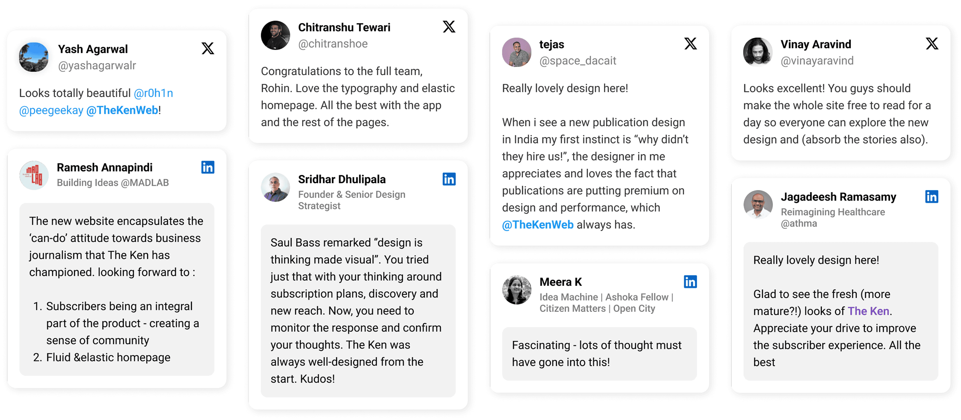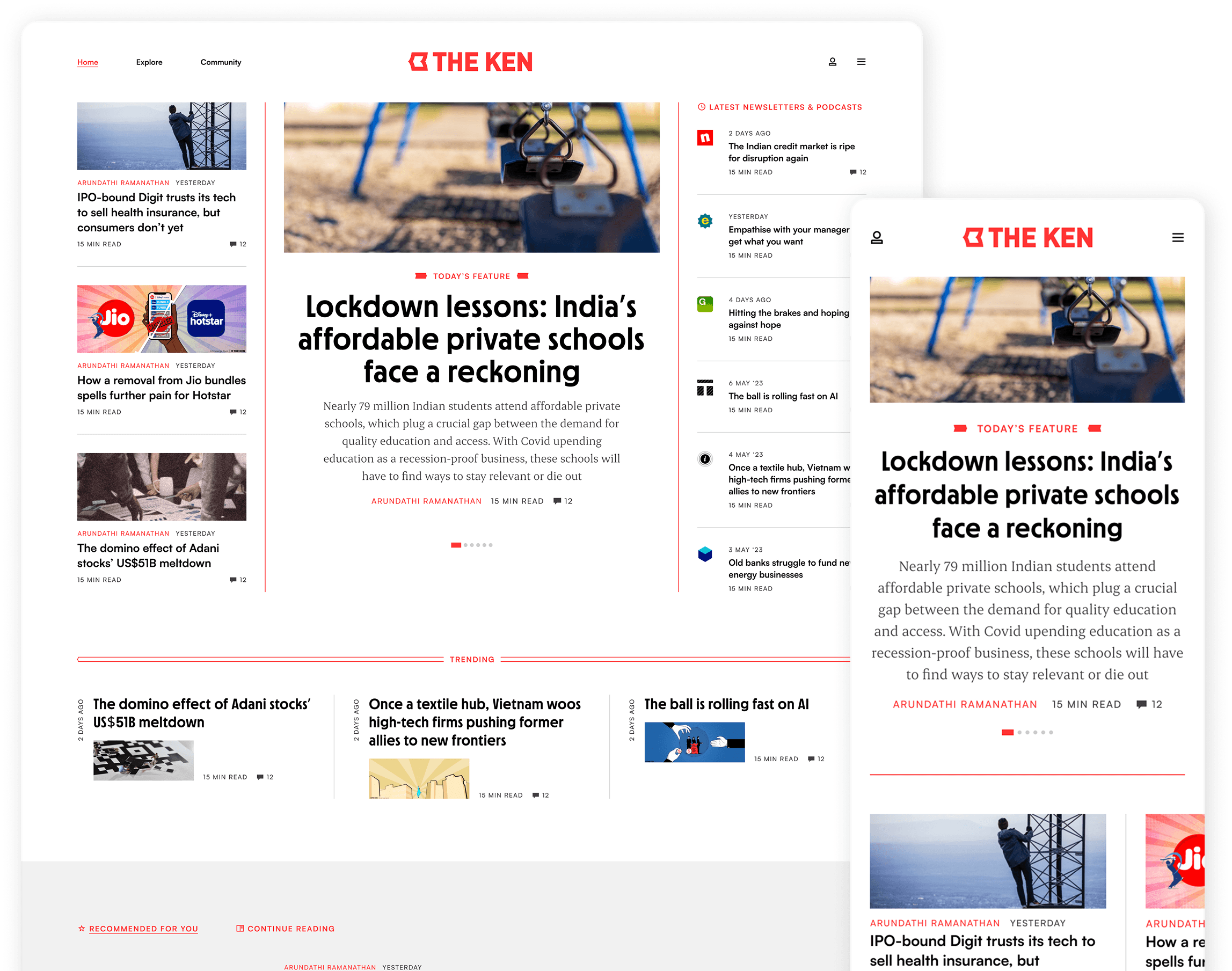While The Ken doesn’t have direct competitors, we studied globally respected publications. This guided our choices around hierarchy and readability.