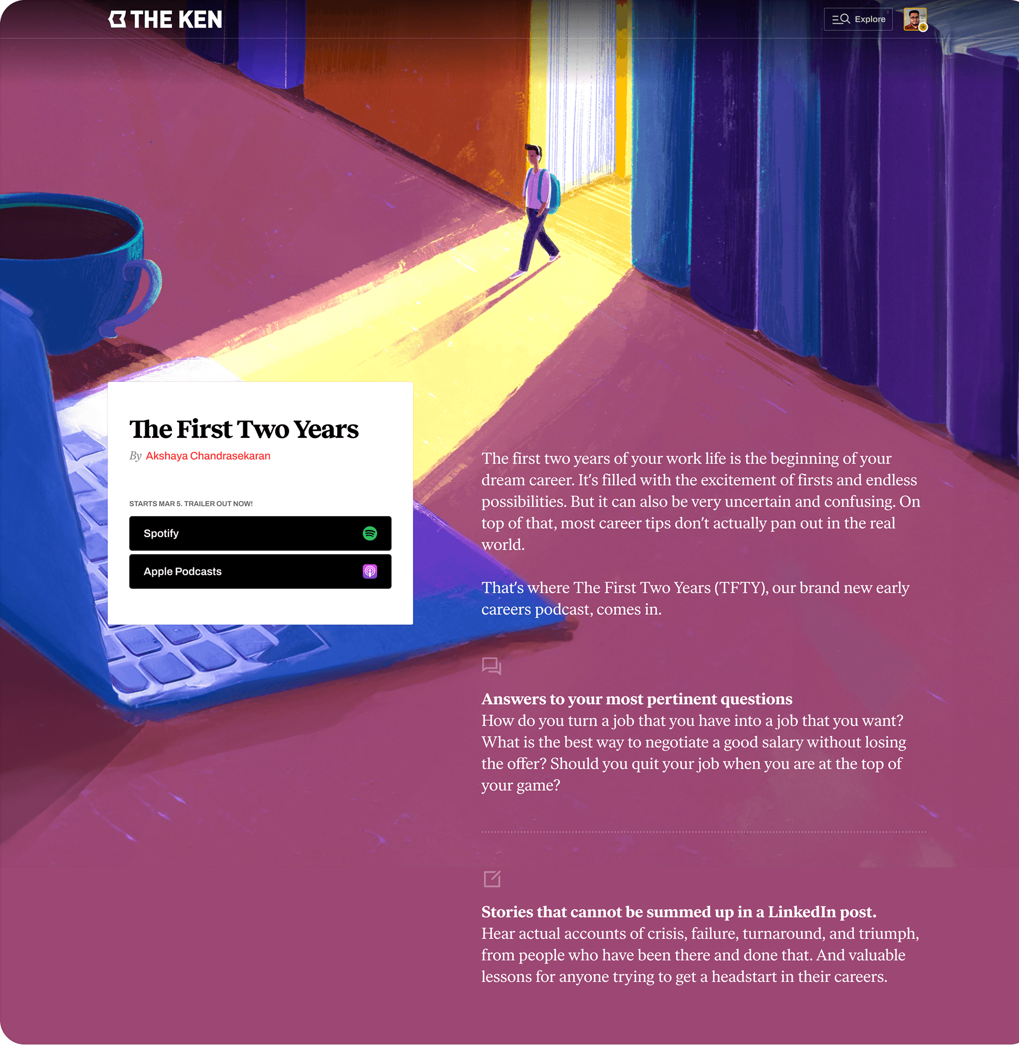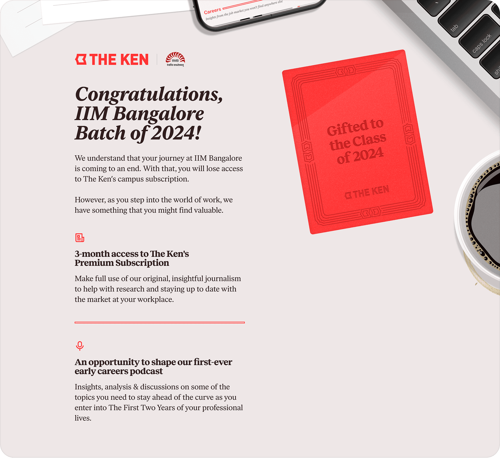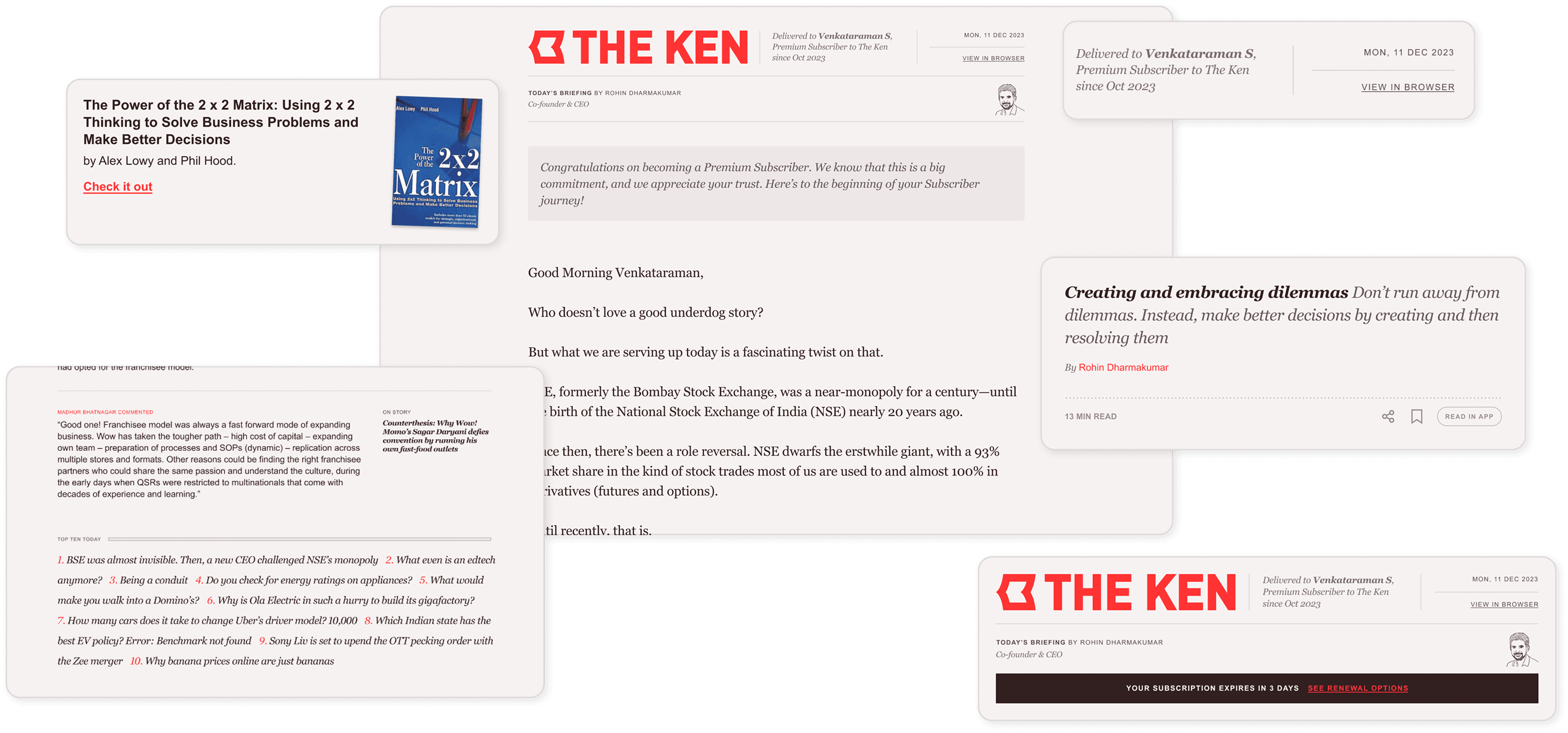 The Ken launched in 2016 with a pioneering one-story-a-day model. Over the years, it has evolved into a multi-format business publication, expanding into newsletters and podcasts. Today, it is trusted by over half a million reader globally.