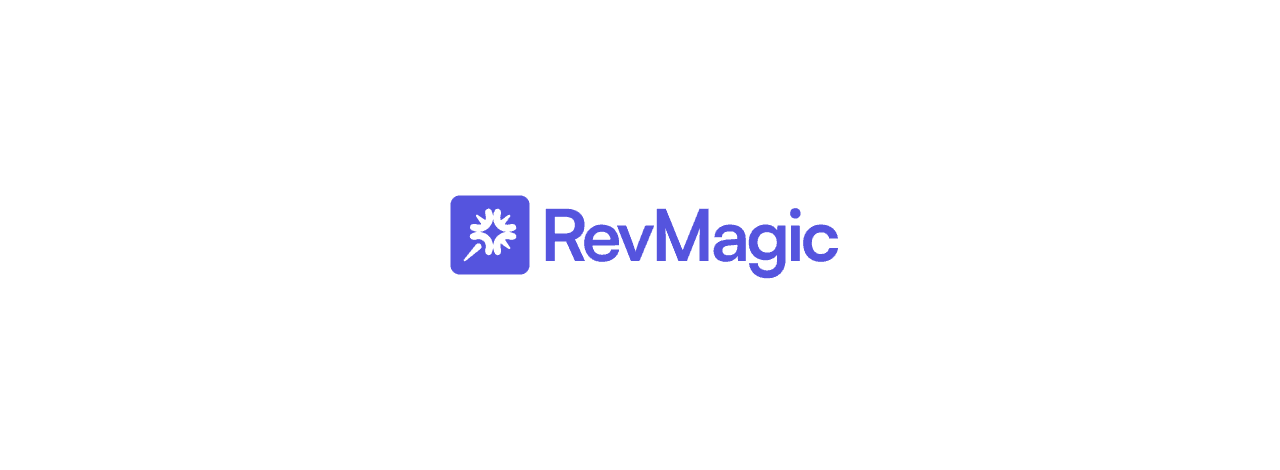 A small pill-style label above each heading provides quick context, using a sparkle icon to subtly reference both AI and the Revmagic logo.